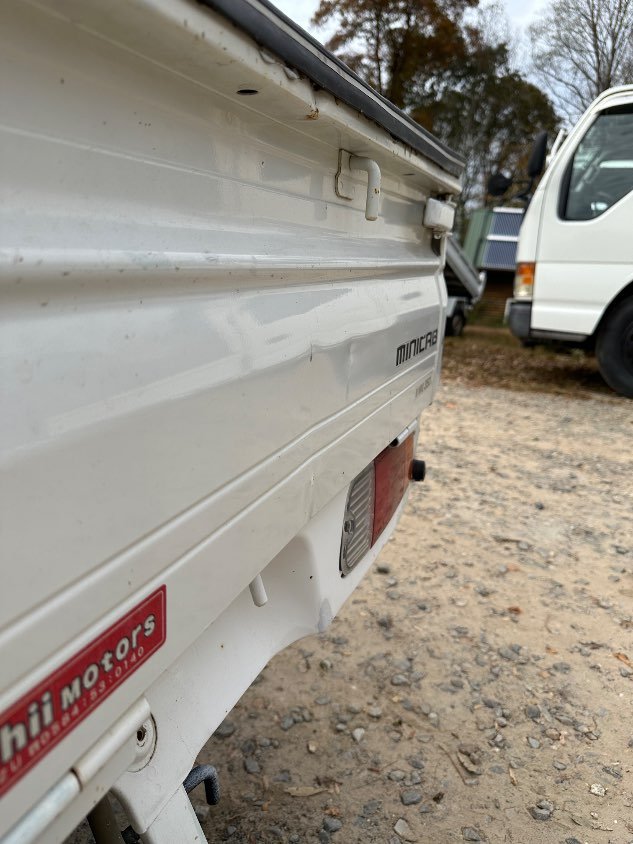 The vehicle has 35,753mi/57,540km, is in great condition and works well! Pictured is a ding in the bedside panel, a dent behind the passenger’s side headlight, and scuff marks on the front bumper. Aside from this, the truck is in great shape! It has been completely serviced with full synthetic fluids, oil filter, and an air filter. We have strict guidelines for purchasing in Japan, so the vehicles that we sell are tight and ready for many years of reliable performance. Mayberry Mini Trucks is responsible for mini trucks being street legal in North Carolina. We introduced the legislation and petitioned the governor to sign the bill into law. The NCDMV special titles department requires 8 to 10 weeks to process a title. Mayberry Mini Trucks will follow up with the NCDMV on a regular basis, to make sure the process is completed as soon as administratively feasible. While many states will transfer a North Carolina title and allow mini trucks to be driven on their roadways, Mayberry Mini Trucks, Inc. makes no claims and bears no responsibility regarding which states will or will not allow mini trucks to operate on their roadways.